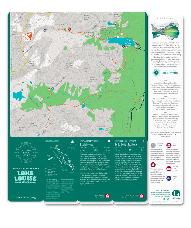 Rewriting the scripts that were first in place was a great challenge, partners, alliances and diverse minds have helped us foster a conservation mindset. Places anchored into the Canadian landscape become a chance to involve the next generation of mountain enthusiasts and embrace trails with more diverse and inclusive options. Becoming artifacts of the experience our line of Canadian Rockies Field Guides is available in a host of retailers, an evolving line they continue to inform us on how to design better trail experiences and involve feedback from guides to retailers.